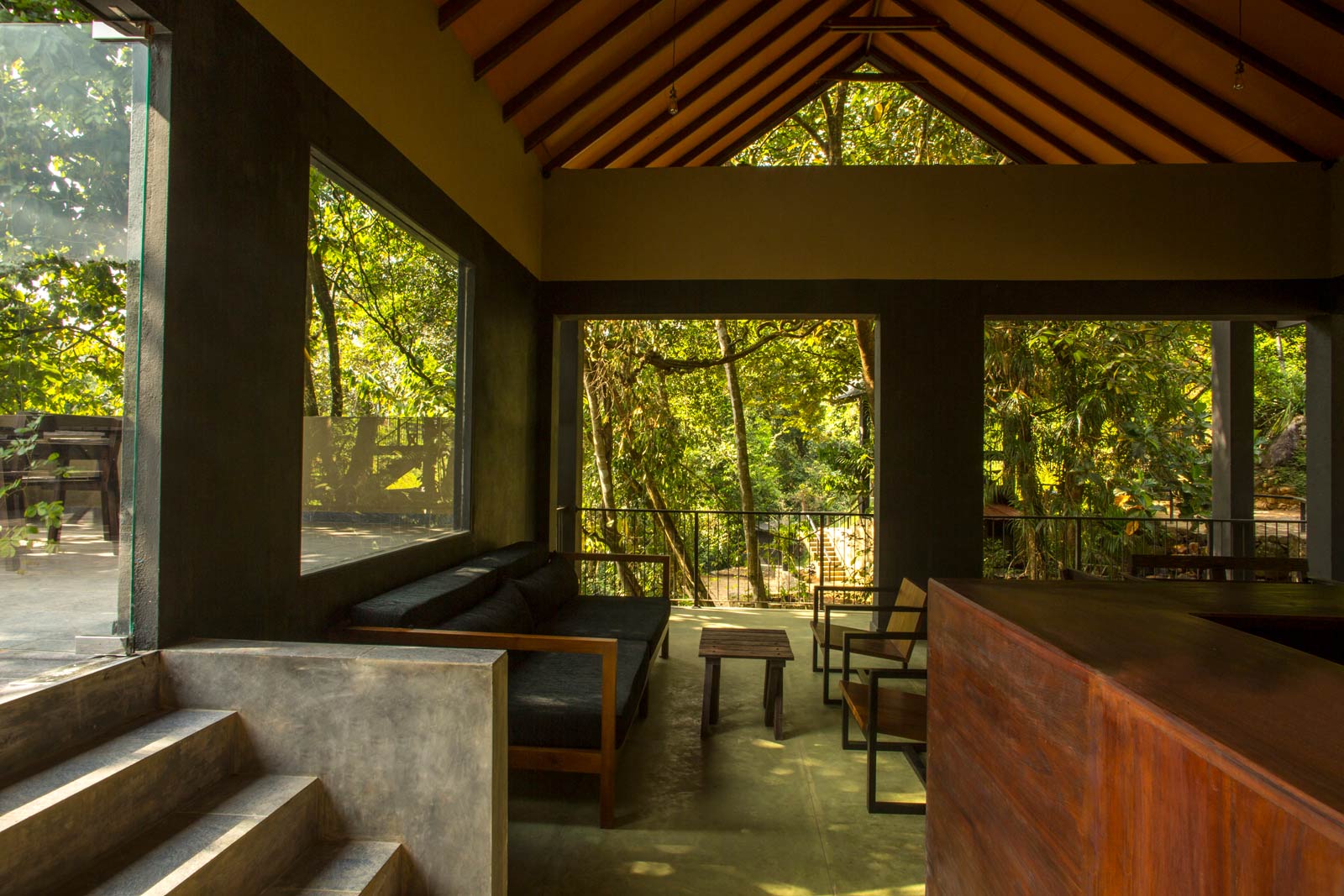 Surrounded by lush greens of mountains, the forest shade resort is built in complement to the picturesque sceneries where it stands. Its minimalistic approach and inspiration from simple vernacular architecture set phase and space to connect with nature, to immerse in a true experience of wilderness. The design is an integration of nature and architecture that creates a calm, inviting space that is ideal for relaxation; a place to unwind and reinvent the tranquillity of nature.