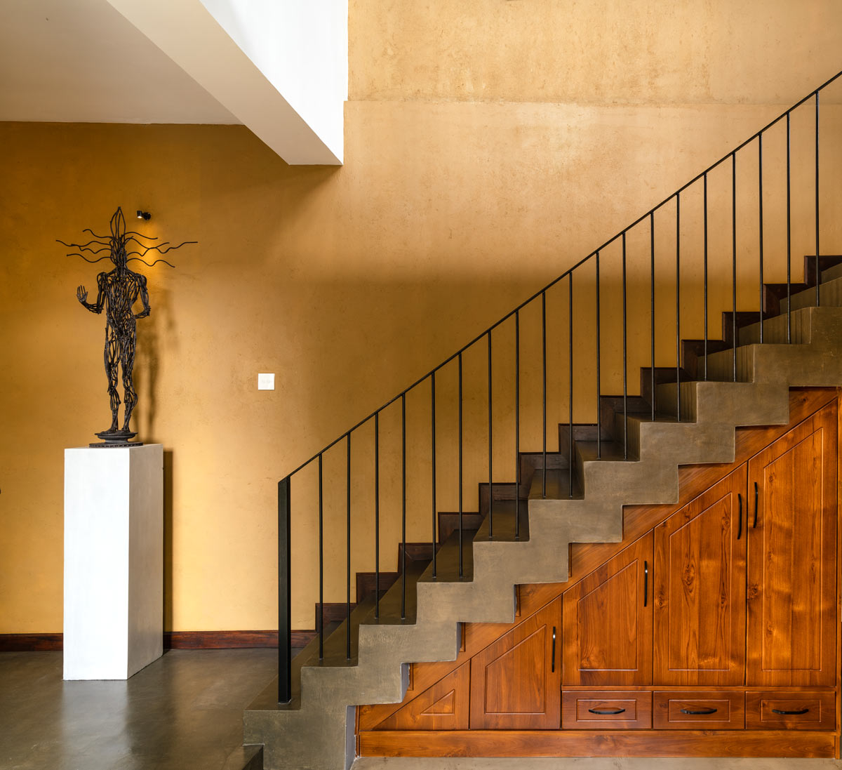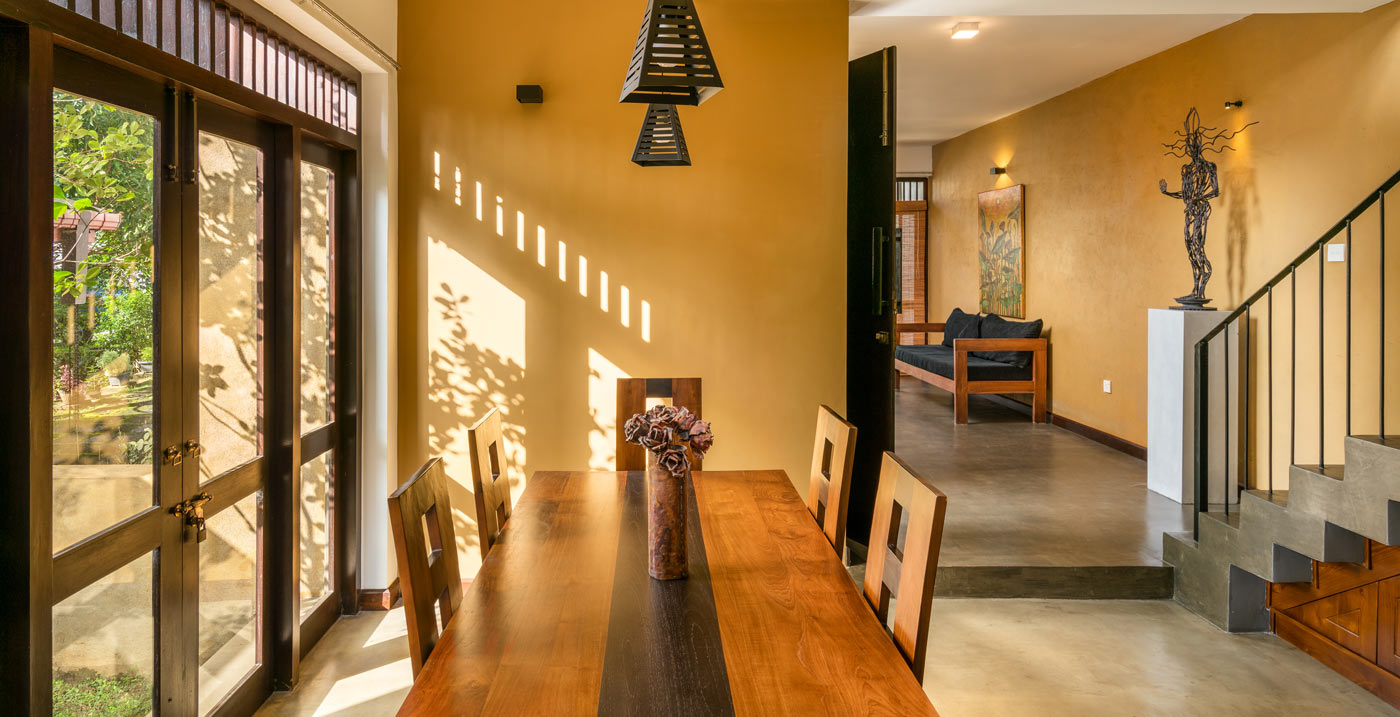 This newly constructed home was built on a narrow and stretched plot of land with only 6 perch situated in the sub-urban context of Matthedoga, Sri Lanka.